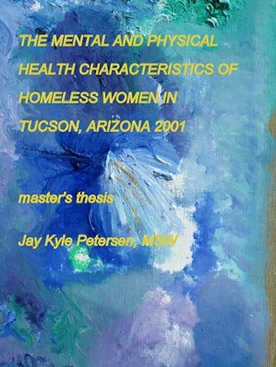 What did you want to do when you were a little girl? Is this the first time you have been homeless? How did you become homeless? These and many more questions were asked of participants. Seventy-two homeless women located in Tucson, Arizona volunteered to participate in this study which took place over a three month period spring - summer 2001. I personally interviewed over 50 of the women myself while the remaining women were interviewed by an administrator located in one of 12 agencies including the county jail that agreed to participate in this study. This was not a point in time study rather a random study with information gathered three different times over a three month period. The El Rio Health Center mini-mental and physical health survey was used as a collecting instrument along with the then titled MOSS SF 36 measuring across 8 domains including emotional and physical health. Qualitative questions were added focused specifically on the issue of homelessness. This study is considered timeless and valued by the database due to its large participation and the use of two valid and reliable instruments. Vignettes were also part of the final document which reveals a number of reasons for homelessness from substance abuse, domestic violence, to a house fire. Recommendations were made along with each agency receiving a copy of the study. This master's degree thesis followed all protocols for a university graduate thesis.